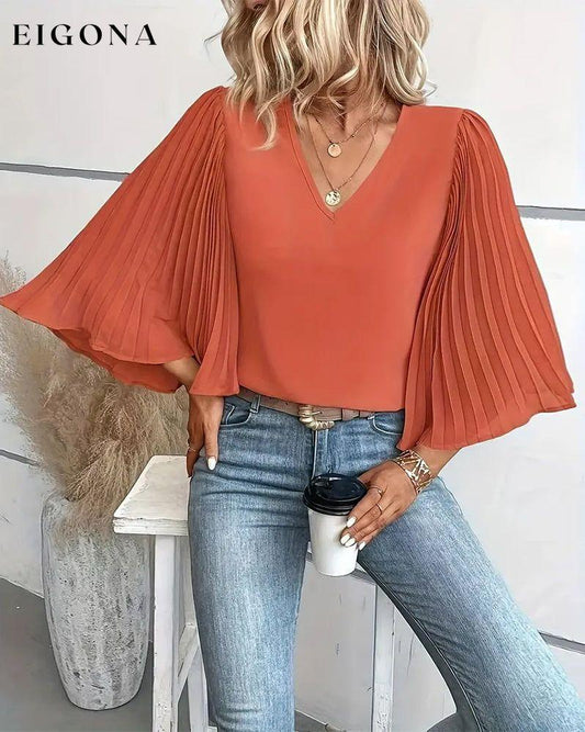Chemisier à la mode à manches papillon et col en V de couleur unie