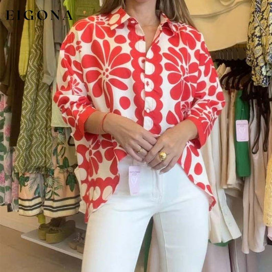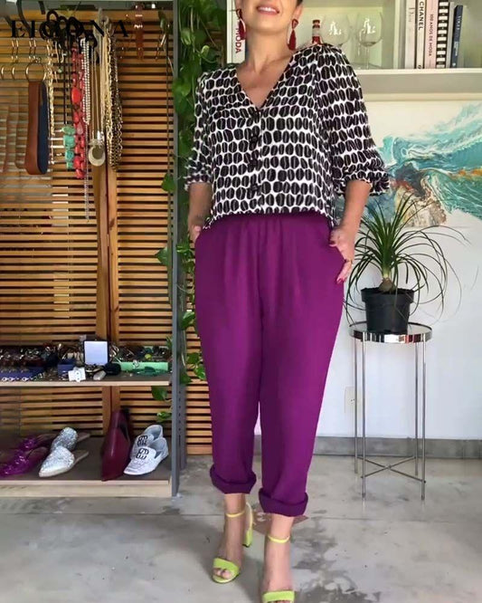 Blouses décontractées à col en V et imprimé à pois à manches trois-quarts