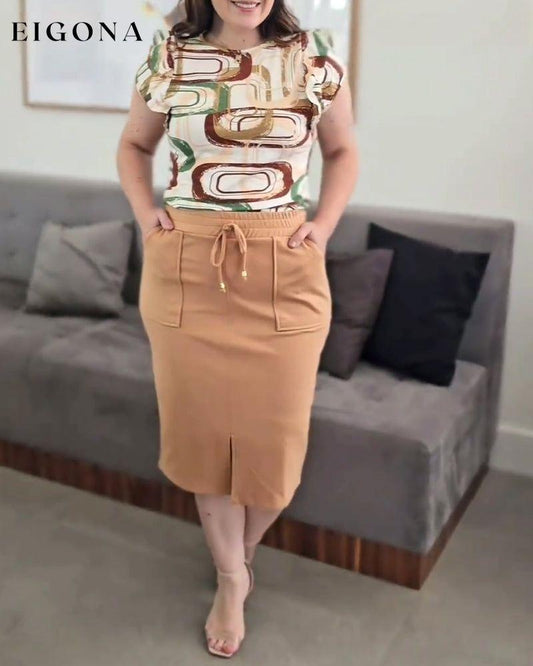 Haut décontracté à manches courtes et col en V à imprimé géométrique