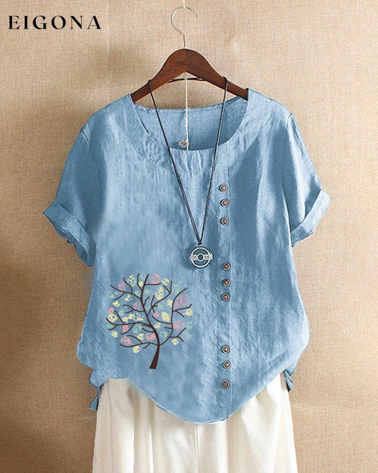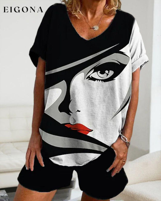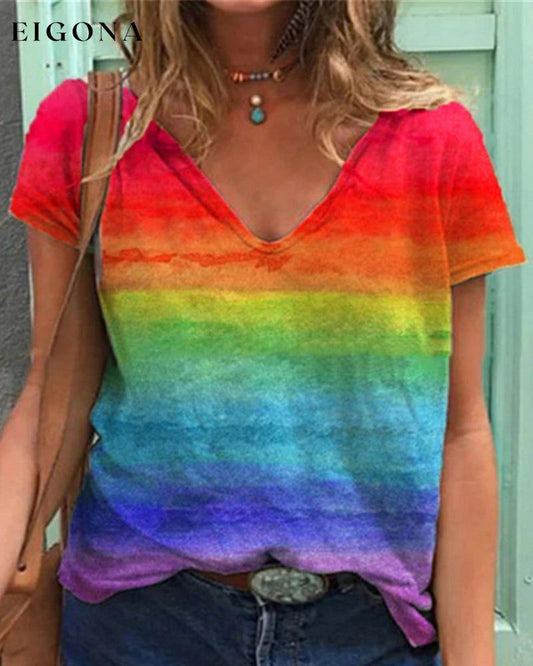T-shirt décontracté à manches courtes et col en V imprimé arc-en-ciel