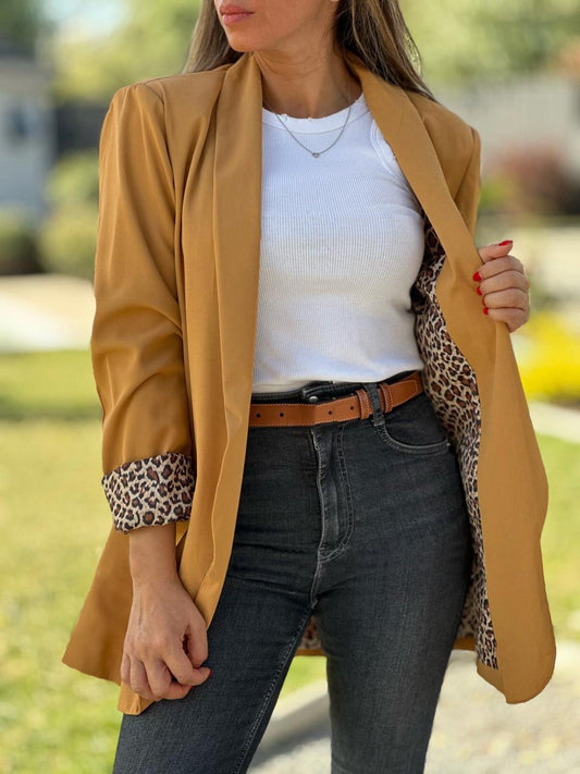 Giacca casual a maniche lunghe con stampa leopardata da donna