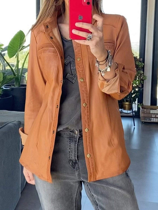 Cappotto casual da donna in peluche patchwork a maniche lunghe