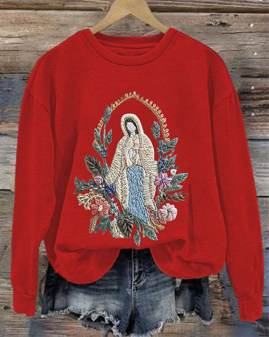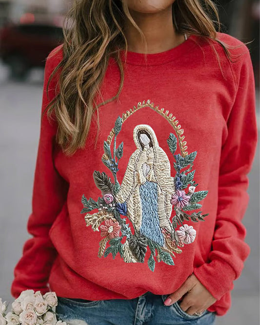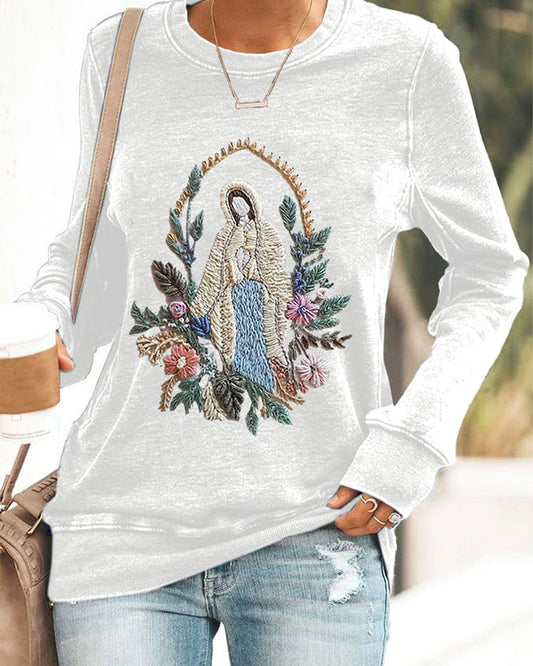 Felpa con stampa floreale della Madonna cristiana da donna