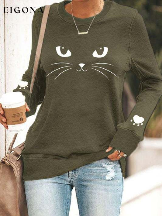 Felpa casual con stampa gatto da donna