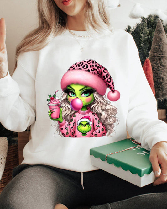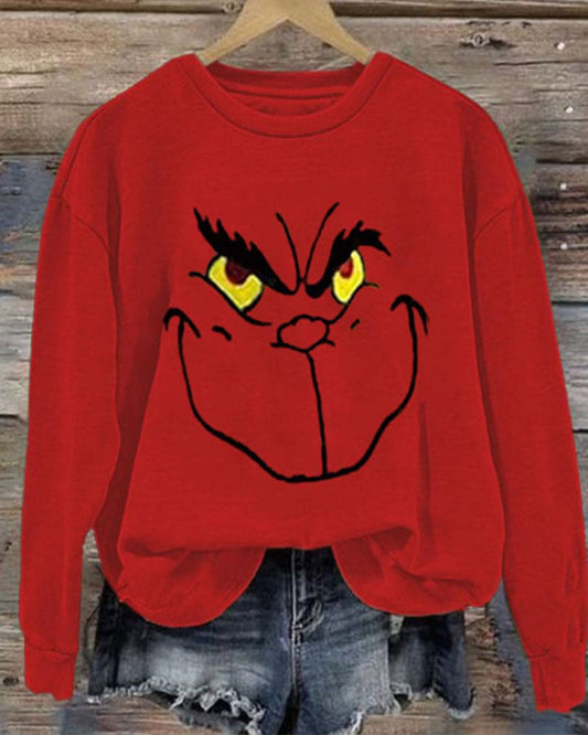 Felpa da donna con stampa faccia verde natalizia