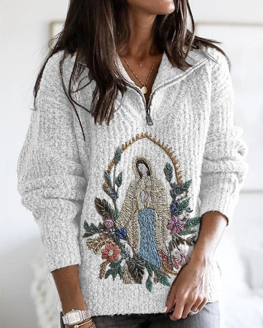 Maglione casual lavorato a maglia cristiano floreale Our Lady da donna