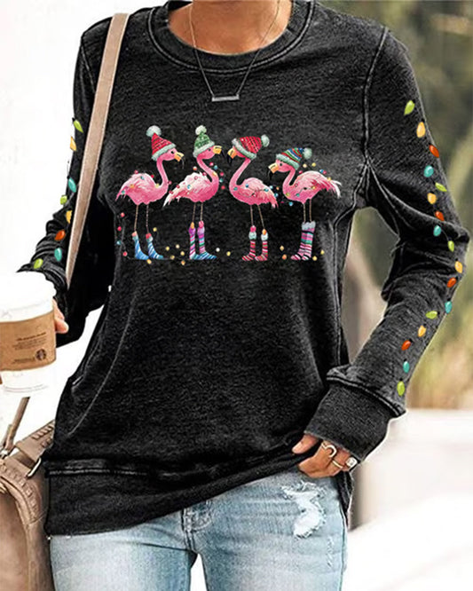 Felpa girocollo con stampa fenicotteri natalizi da donna
