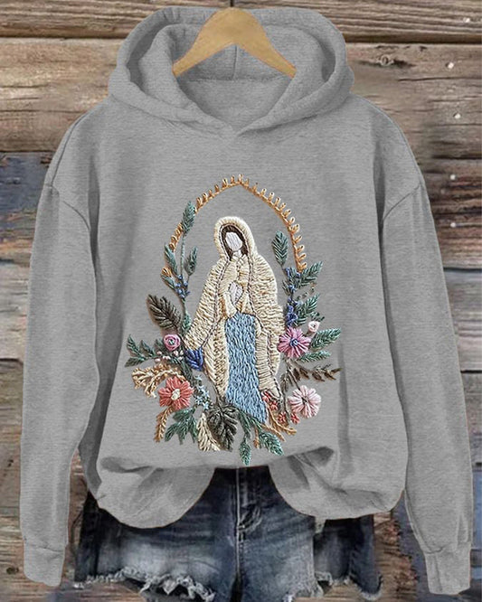 Felpa con cappuccio con stampa floreale della Madonna cristiana da donna