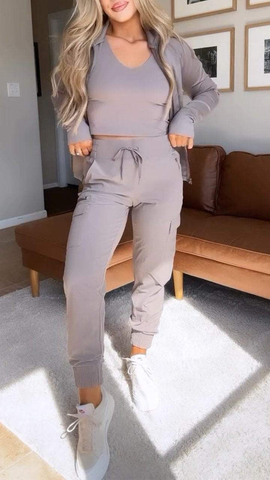 Completo sportivo da donna con risvolto e cerniera, 3 pezzi