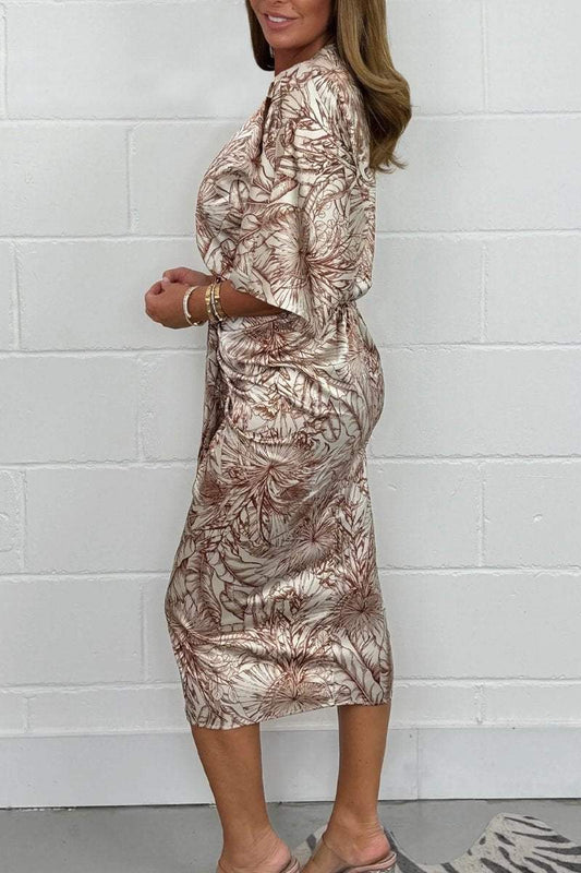 Abito da donna con scollo a V attorcigliato con stampa a foglie