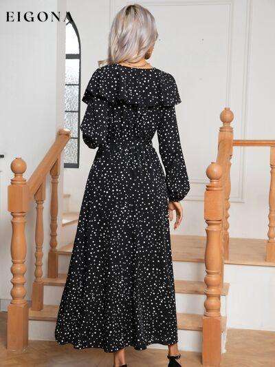 Abito con spacco a maniche lunghe con cravatta a pois sul davanti