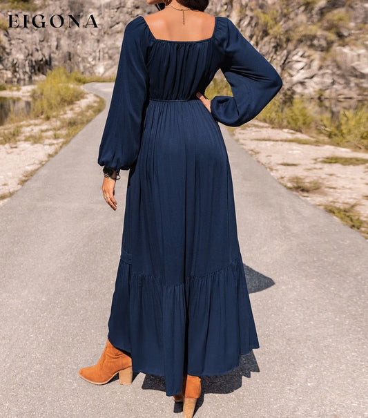 Abito midi casual a maniche lunghe con sbuffo incrociato