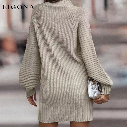 Mini abito a maniche lunghe con collo alto, abito rotondo con collo a lupetto in maglia a coste