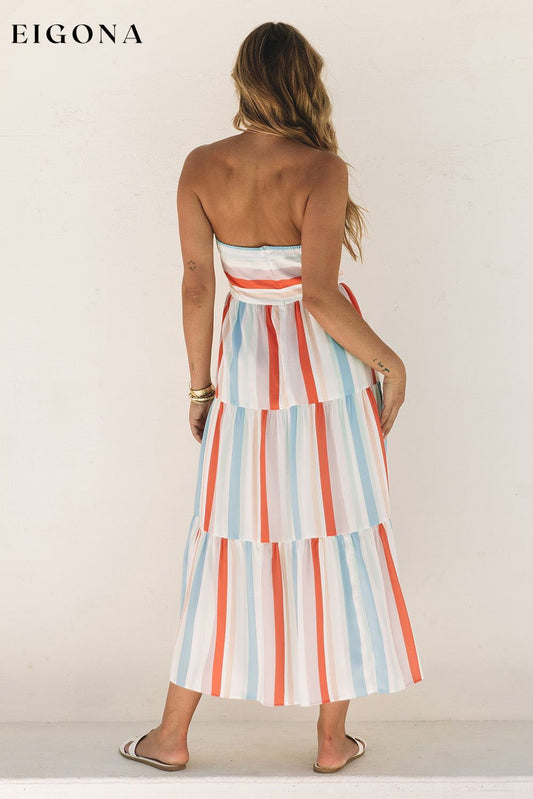 Abito maxi a strati senza spalline con decorazioni a righe multicolor