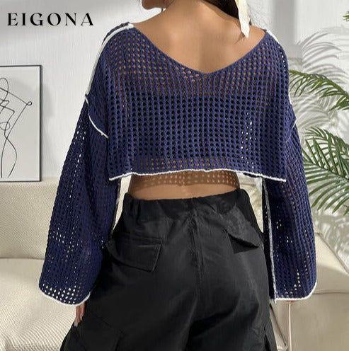 Top corto corto irregolare a maniche lunghe irregolare con lacci con cardigan cavo trasparente sexy da donna