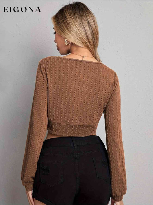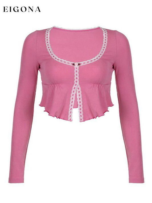 Top corto Y2K a maniche lunghe slim con volant irregolare e colletto a U
