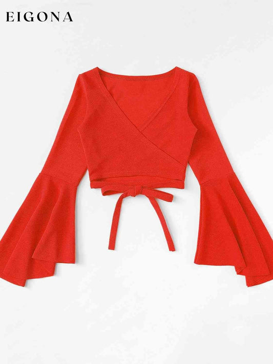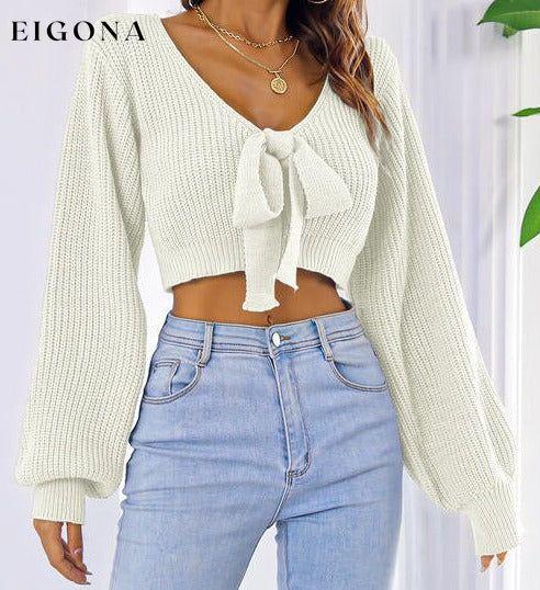 Maglione corto a maniche lunghe con scollo a V e fiocco