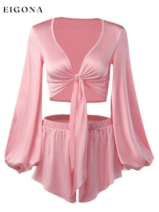 Nuovo top con scollo a V con maniche a lanterna, set di pantaloncini con spalline sexy con ombelico scoperto in stile vacanza