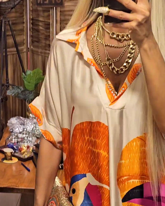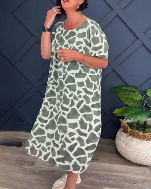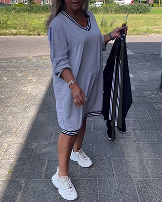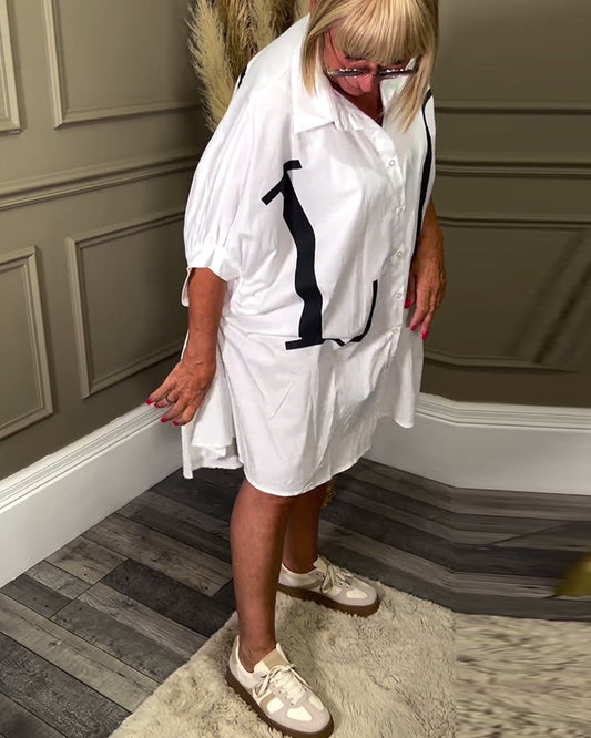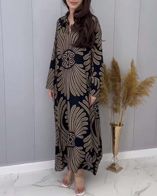 Abito casual a maniche lunghe con stampa a contrasto retrò