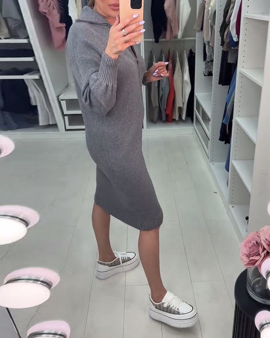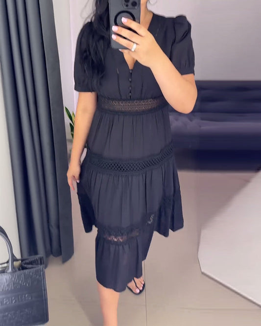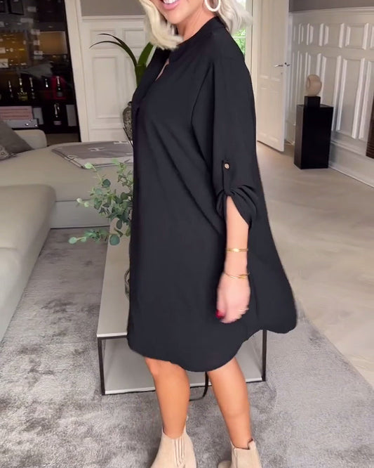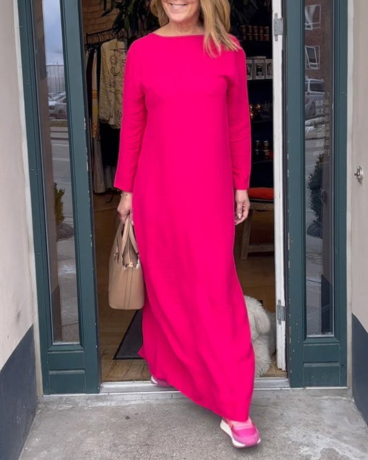 Abito elegante con bottoni e scollo tondo a maniche lunghe