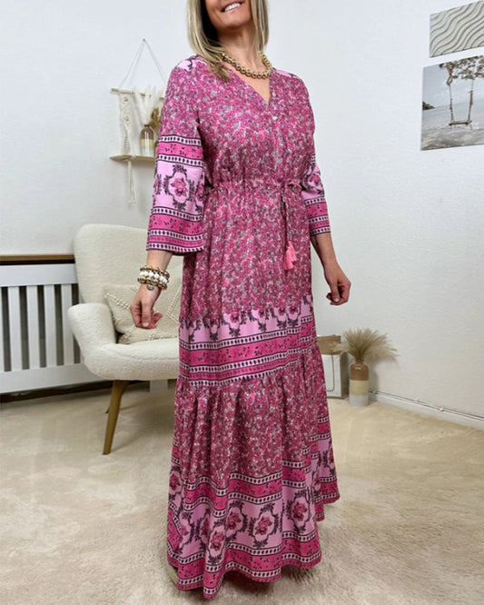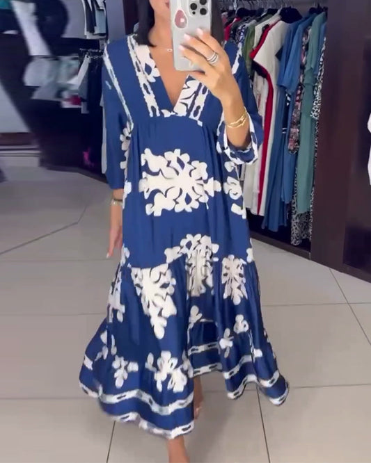 Abito a fiocco di neve con scollo a V e maniche a tre quarti