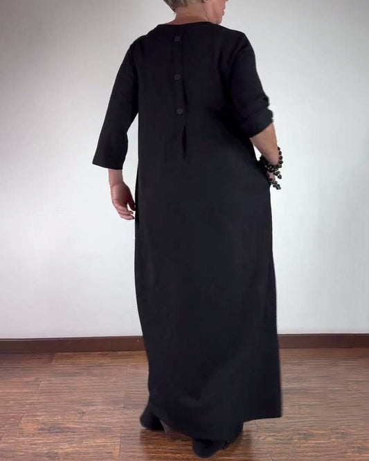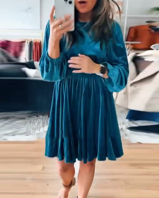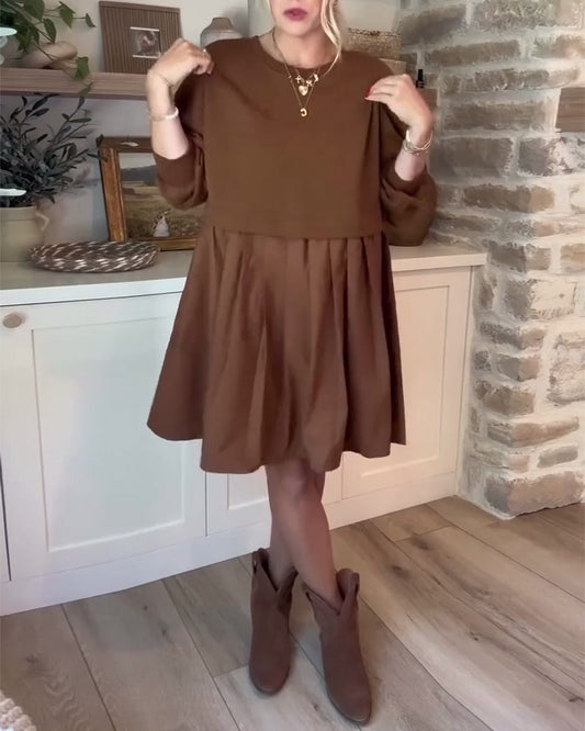 Abito casual a maniche lunghe con scollo tondo e tinta unita