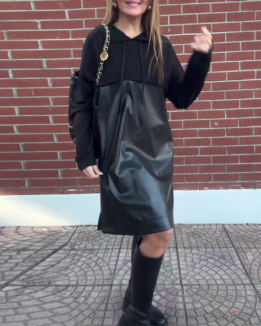 Abito casual con cappuccio e spacchi uniti in tinta unita
