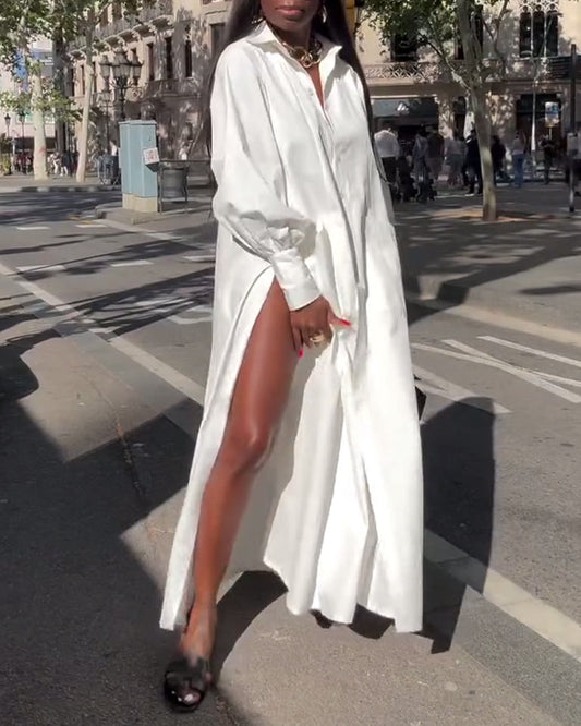 Abito casual con spacco largo e tinta unita e maniche a lanterna