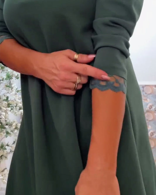 Abito a trapezio con scollo tondo e pizzo in vita