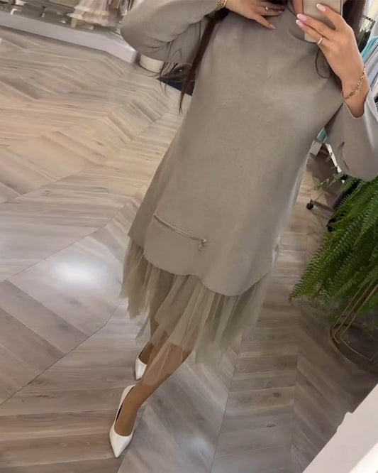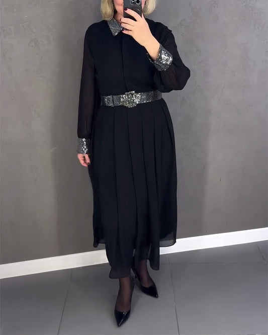 Abito casual a pieghe con maniche lunghe in vita