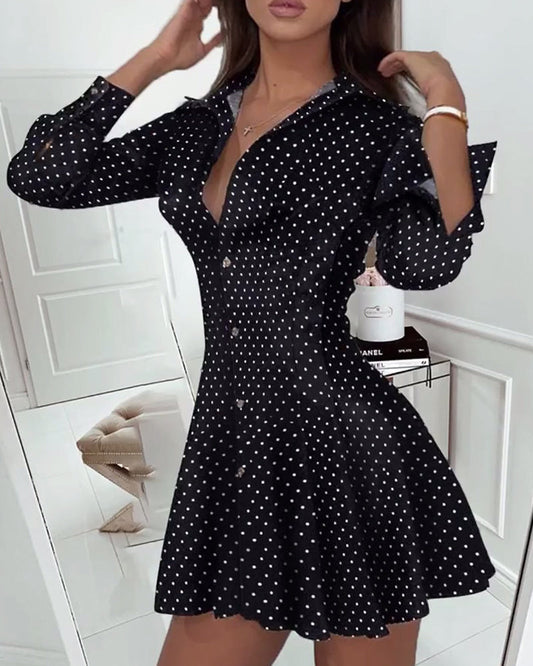 Abito plissettato casual con stampa a pois
