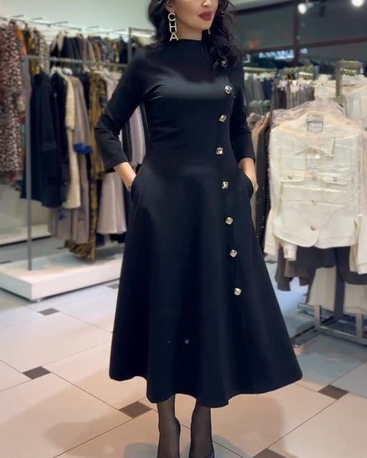 Elegante abito con orlo a A decorato con bottoni
