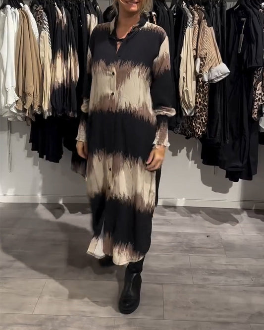 Abito camicia con maniche a lanterna e bottoni dipinto a inchiostro