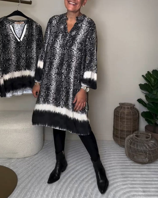 Abito color block con stampa serpente e scollo a V