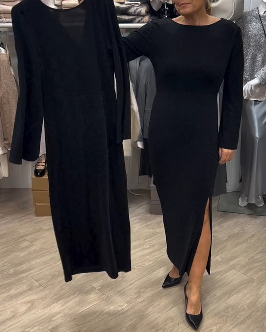 Abito aderente con scollo tondo e spacco