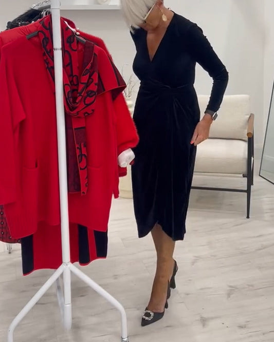 Abito in velluto plissettato con scollo a V profondo