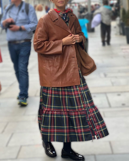 Abito camicia a quadri con bottoni sul risvolto