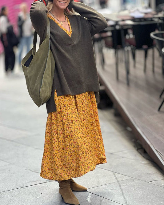Abito floreale a maniche lunghe con scollo a V