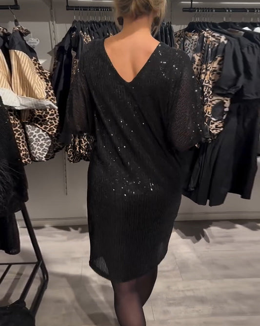 Abito a tubino con paillettes e maniche a pipistrello e scollo a V