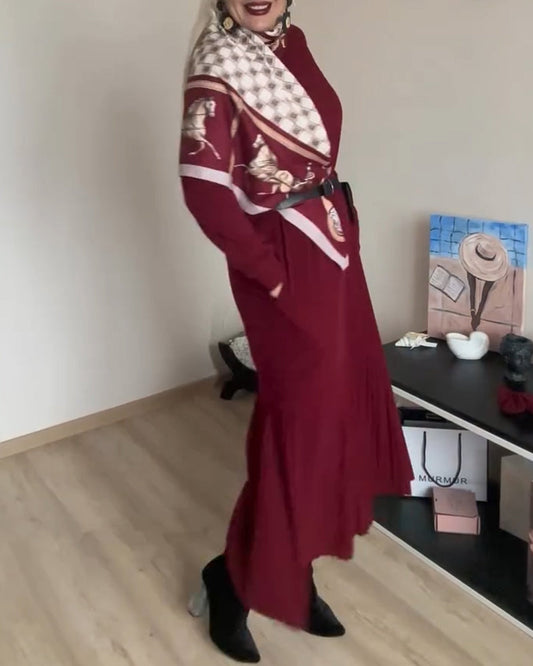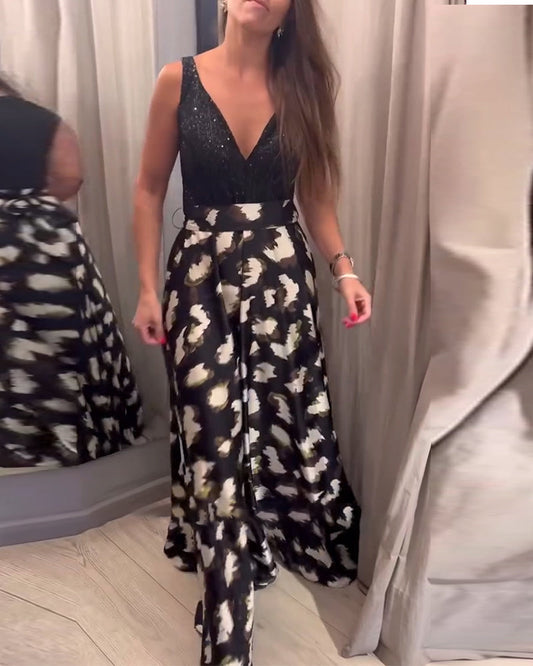 Abito lungo fino alla vita con scollo a V e stampa