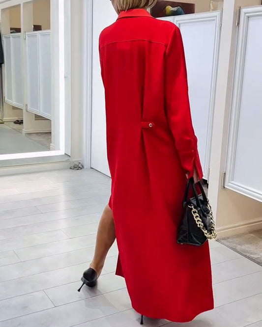 Abito camicia con spacchi, revers smussati e bottoni decorativi