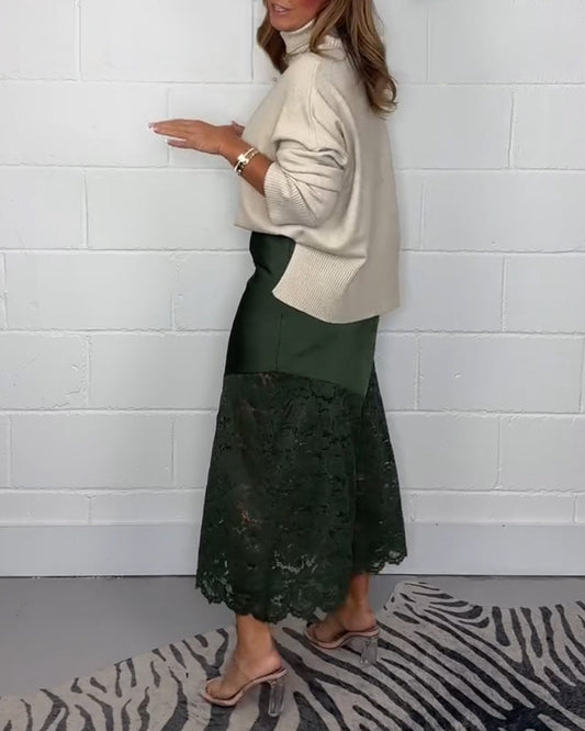 Gonna midi personalizzata con patchwork in pizzo che copre i fianchi