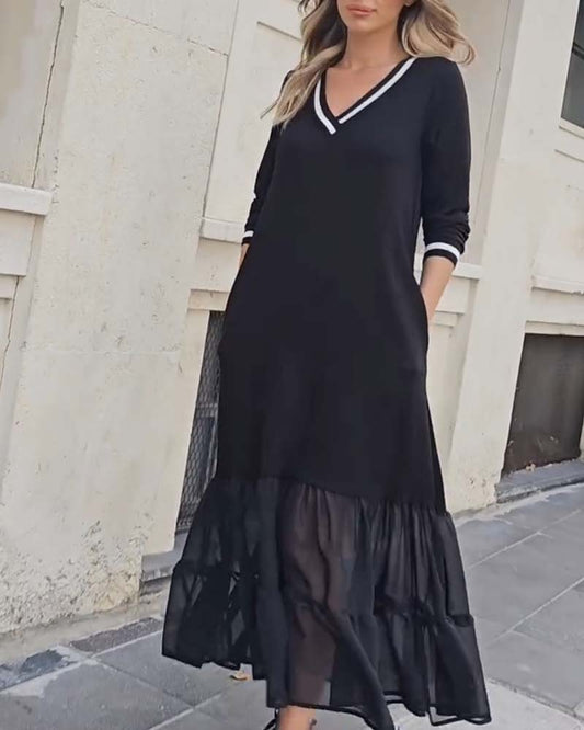 Abito patchwork in rete a maniche lunghe con scollo a V