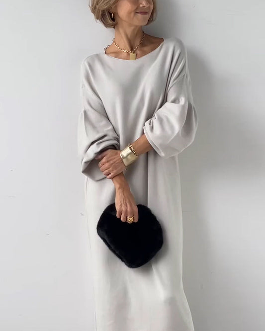 Abito lungo casual con maniche a sbuffo e spalle cadenti