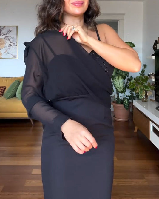 Abito a rete con scollo a V e temperamento irregolare