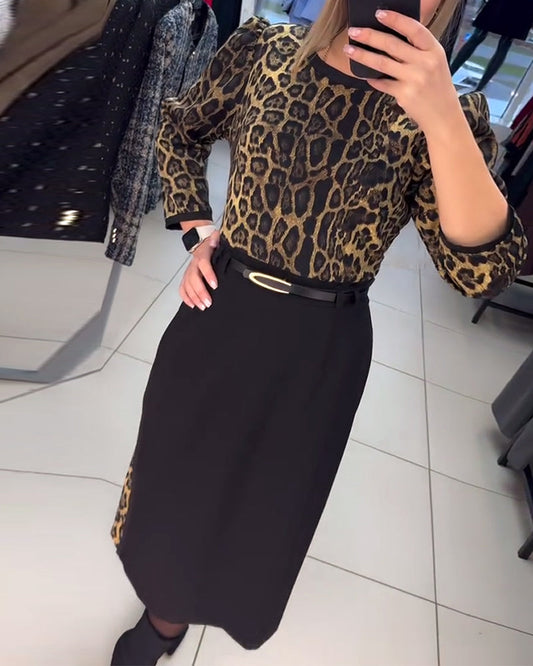 Abito con spacchi e stampa leopardata a maniche a sbuffo