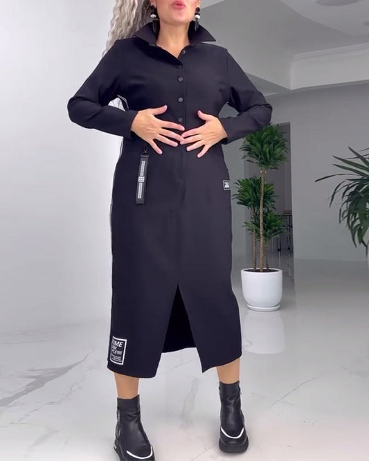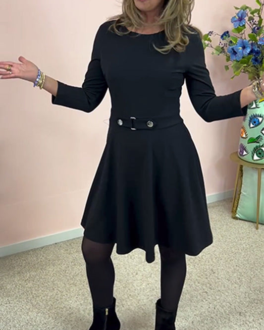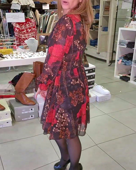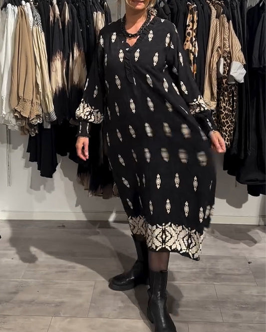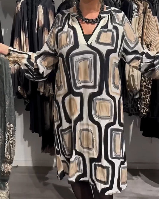 Abito con stampa a cerchio a maniche lunghe e scollo tondo
