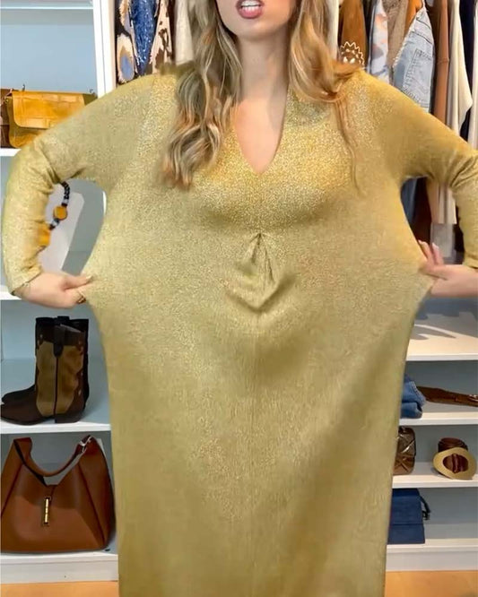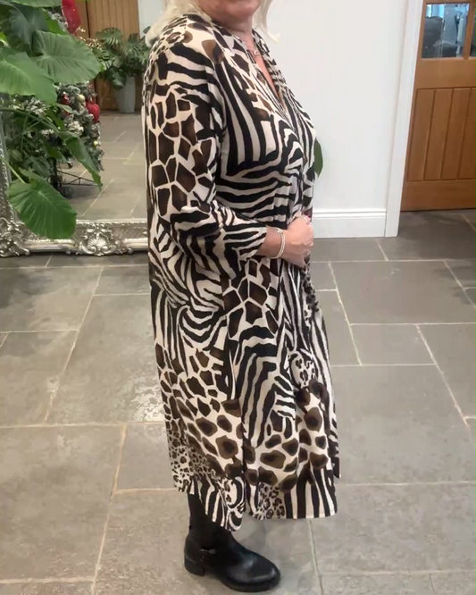 Abito largo di grandi dimensioni con stampa alla moda e scollo a V