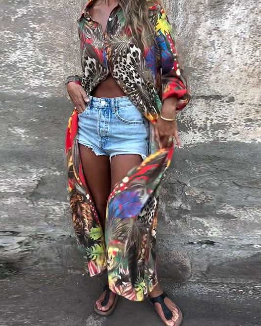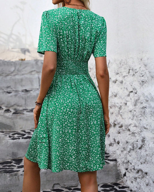 Abito con stampa floreale a maniche lunghe e scollo a V