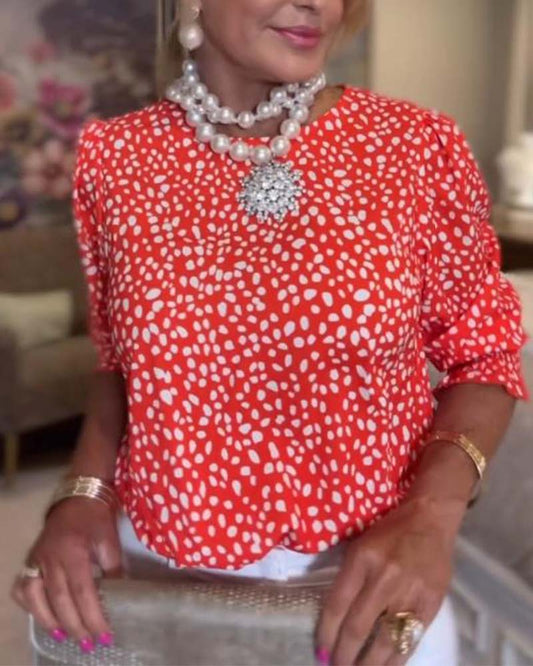Camicetta a maniche corte con scollo tondo e stampa a pois